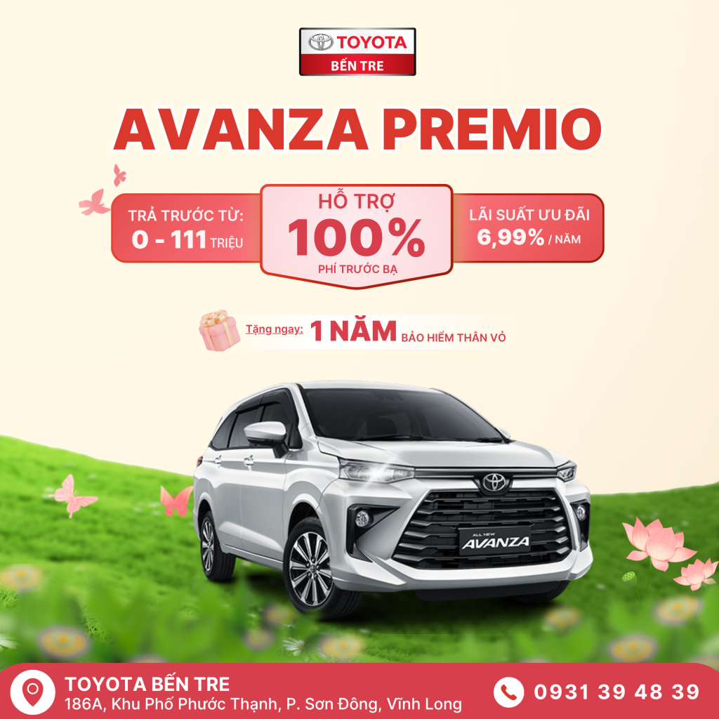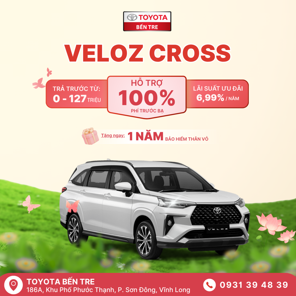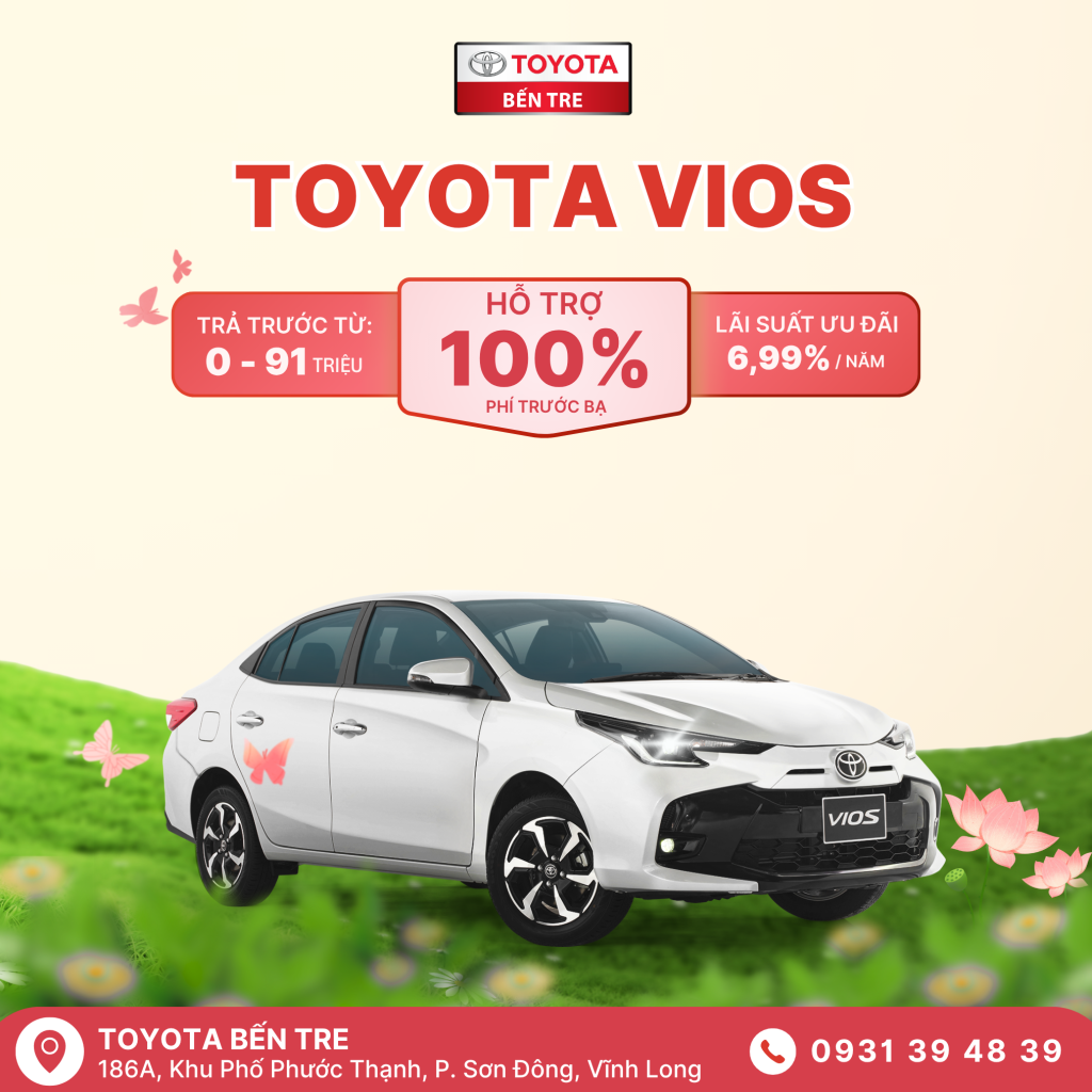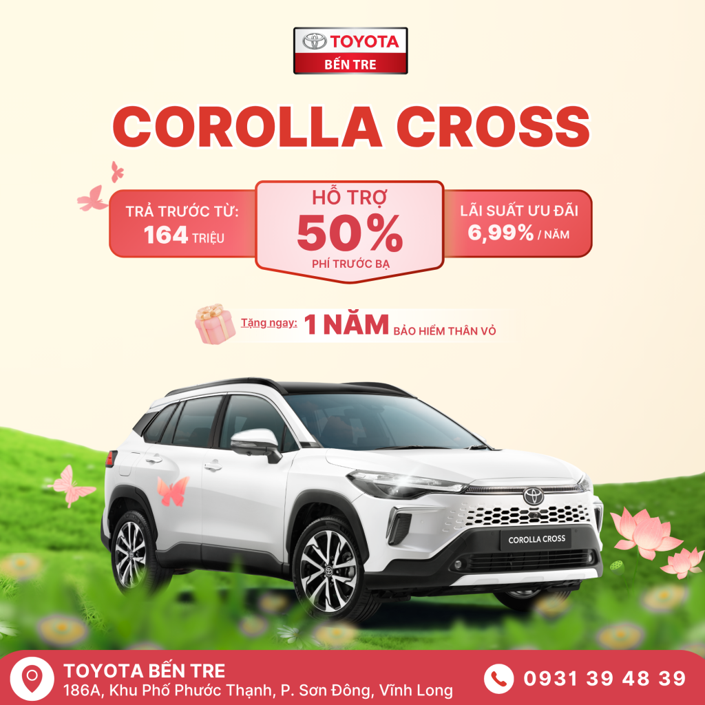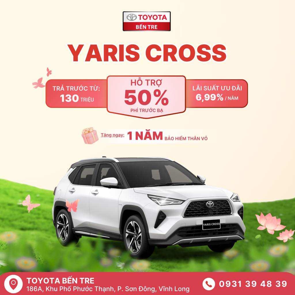 Toyota Bến Tre đồng hành cùng Công ty Ô tô Toyota Việt Nam (TMV), Công ty Tài chính Toyota Việt Nam (TFSVN) triển khai chương trình khuyến mại siêu hấp dẫn dành cho khách hàng trong tháng 10/2025. Thông tin chương trình cụ thể như sau: