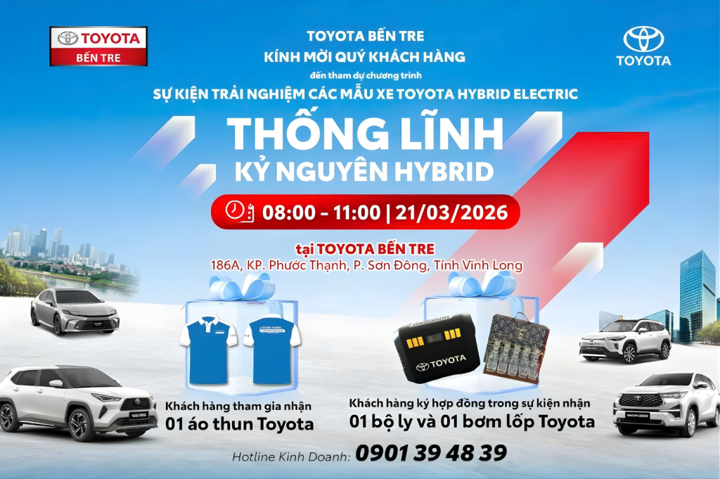 Địa điểm: Toyota Bến Tre – 186A, KP. Phước Thạnh, P. Sơn Đông, Tỉnh Vĩnh Long