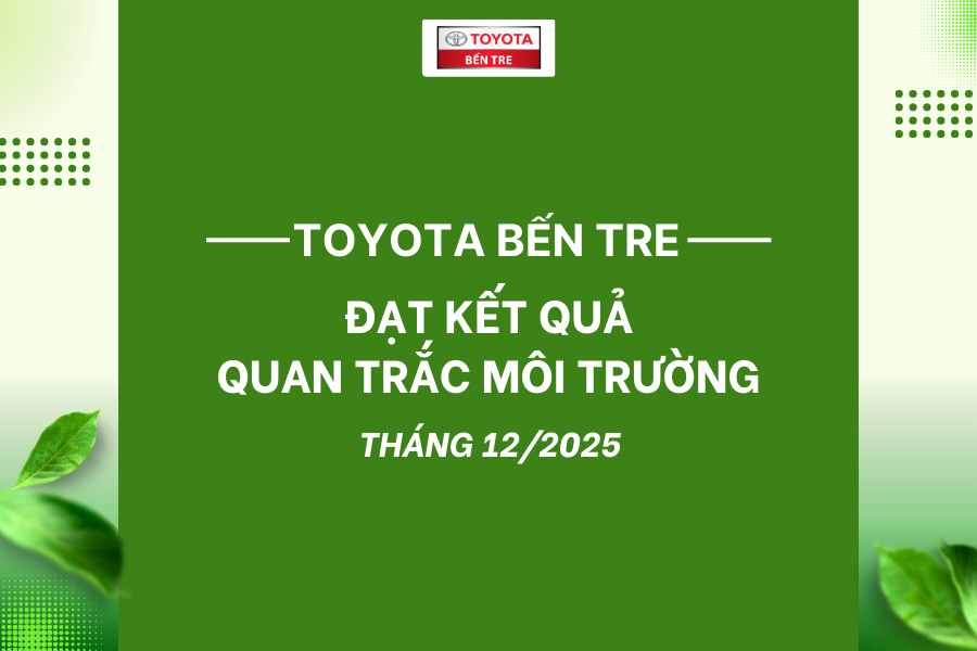 Trong tháng 12/2025, Toyota Bến Tre đã thực hiện quan trắc môi trường định kỳ đối với khí thải và nước thải theo đúng quy định pháp luật.